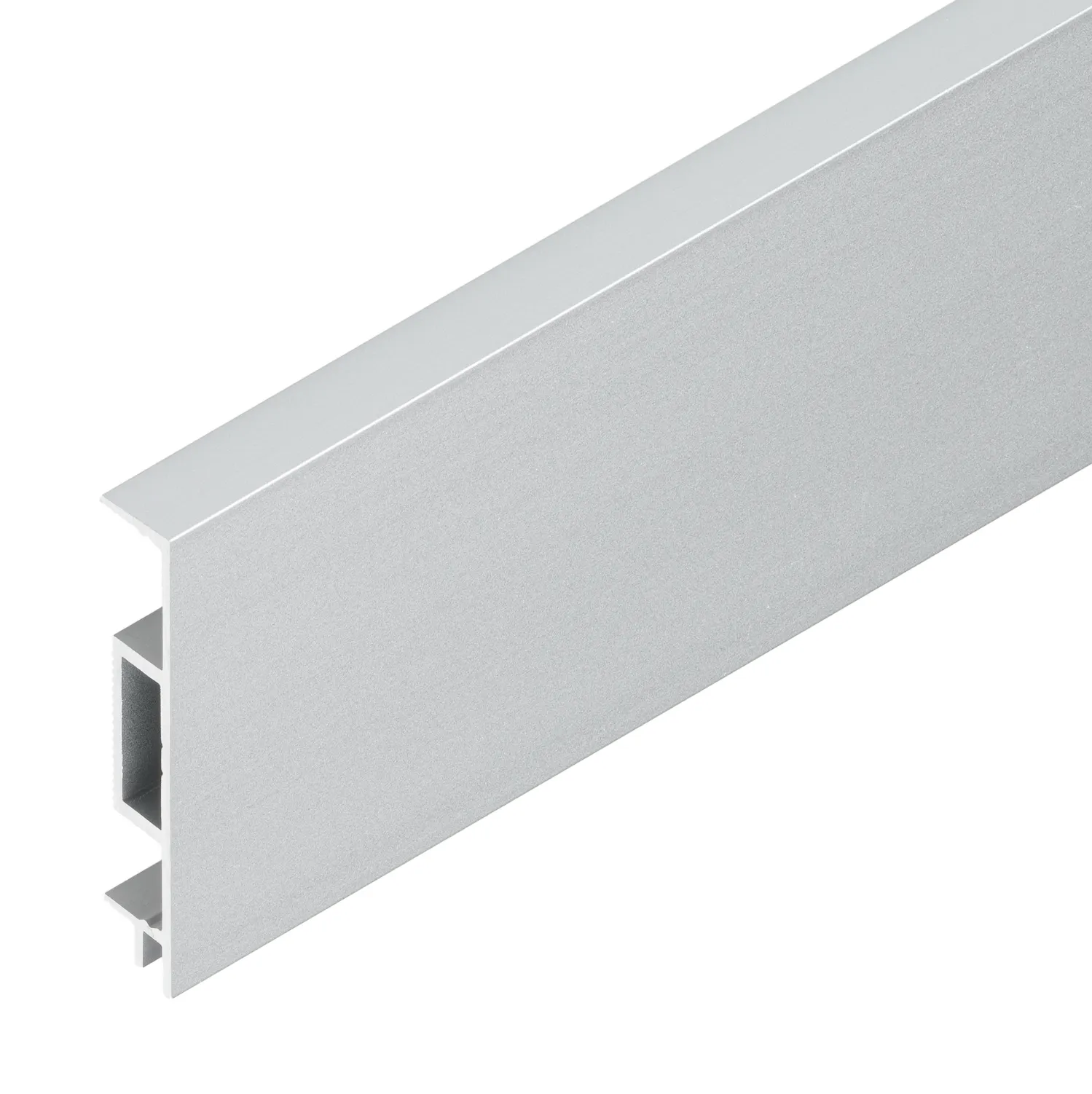 Parallele Aluminium-Sockelleisten mit Dichtungsprofil – wahlweise verschraubt oder geklebt.
