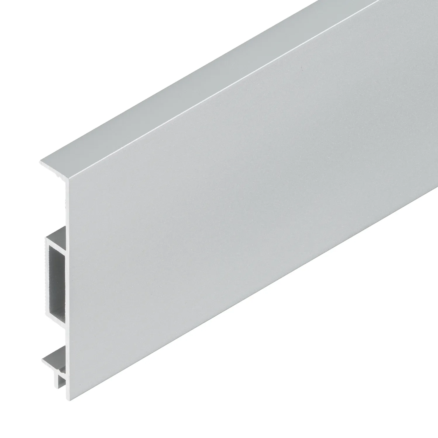 Parallele Aluminium-Sockelleisten mit Dichtungsprofil – wahlweise verschraubt oder geklebt.